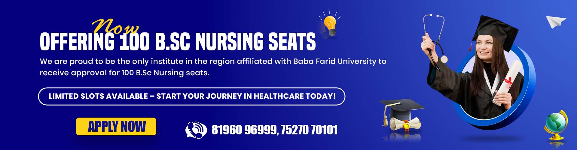 In view of the above, Management has started regular Bachelor of Science in Nursing B.Sc.Nursing, Post basic B.sc (N), GNM, and other one year Para Medical certificate courses recognized by Indian Nursing Council, New Delhi, Baba Farid University of Health Sciences, Faridkot, Punjab Nurses Registration Council, Chandigarh